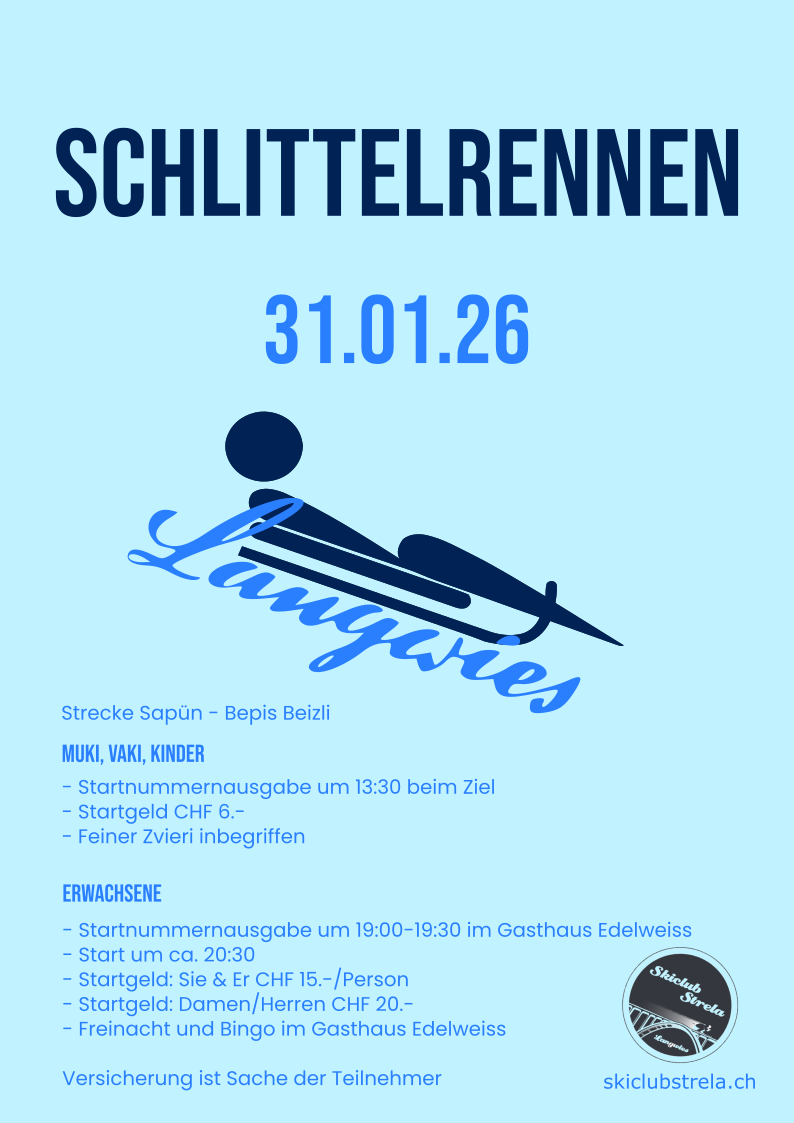 - Es sind ausschliesslich Schlitten erlaubt (keine Bobs, Skischlitten oder Ähnliches)
